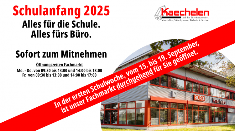 In der ersten Schulwoche vom 15. bis 19. September ist unser Fachmarkt durchgehend für Sie geöffnet.